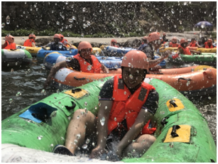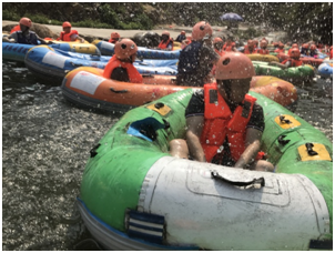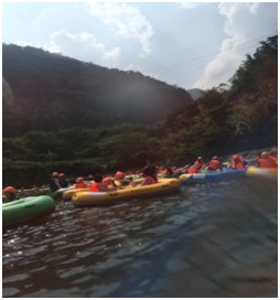 合影結(jié)束后,水上樂園小玩一會(huì)兒。就到今天的重點(diǎn)活動(dòng),黃騰峽勇士漂流!